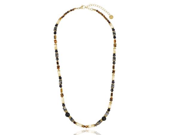 Naszyjnik wykonany z naturalnych kamieni onyksu i kryształu górskiego, ułożonych w drobne, delikatne koraliki przeplatane złotymi kuleczkami ze stali szlachetnej 316L. Subtelny, minimalistyczny i odpowiedni do codziennych stylizacji oraz bardziej eleganckich zestawów.