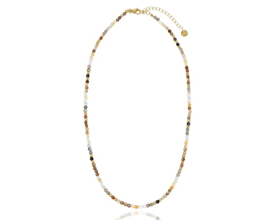 Naszyjnik wykonany ze stali szlachetnej 316L z pozłacanymi elementami 14k, zdobiony naturalnymi kamieniami. Delikatne koraliki z agatu jedwabnego tworzą subtelną, minimalistyczną kompozycję, którą przełamują złote akcenty. Lekki, elegancki i uniwersalny — pasuje zarówno do codziennych stylizacji, jak i bardziej dopracowanych zestawów.